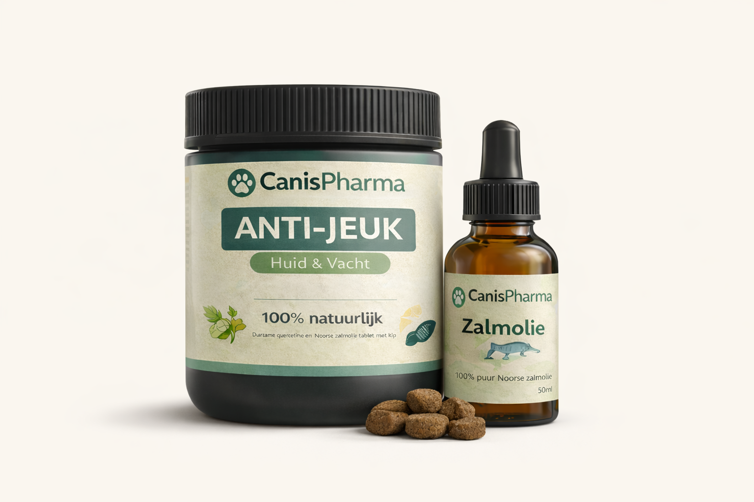 Heeft jouw hond last van aanhoudende jeuk, krabt hij veel of likt hij zijn poten? Jeuk kan verschillende oorzaken hebben, zoals voeding, allergieën, darmproblemen of een gevoelige huid. Het CanisPharma Anti-Jeuk Support Pakket is speciaal samengesteld om je hond van binnenuit te ondersteunen.